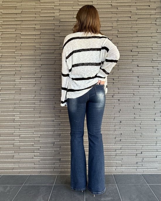 今回のフレアデニムは、フレアの広がりがベストなのはもちろん、カラーと色落ちで着痩せ効果を最大限に引き出しました。