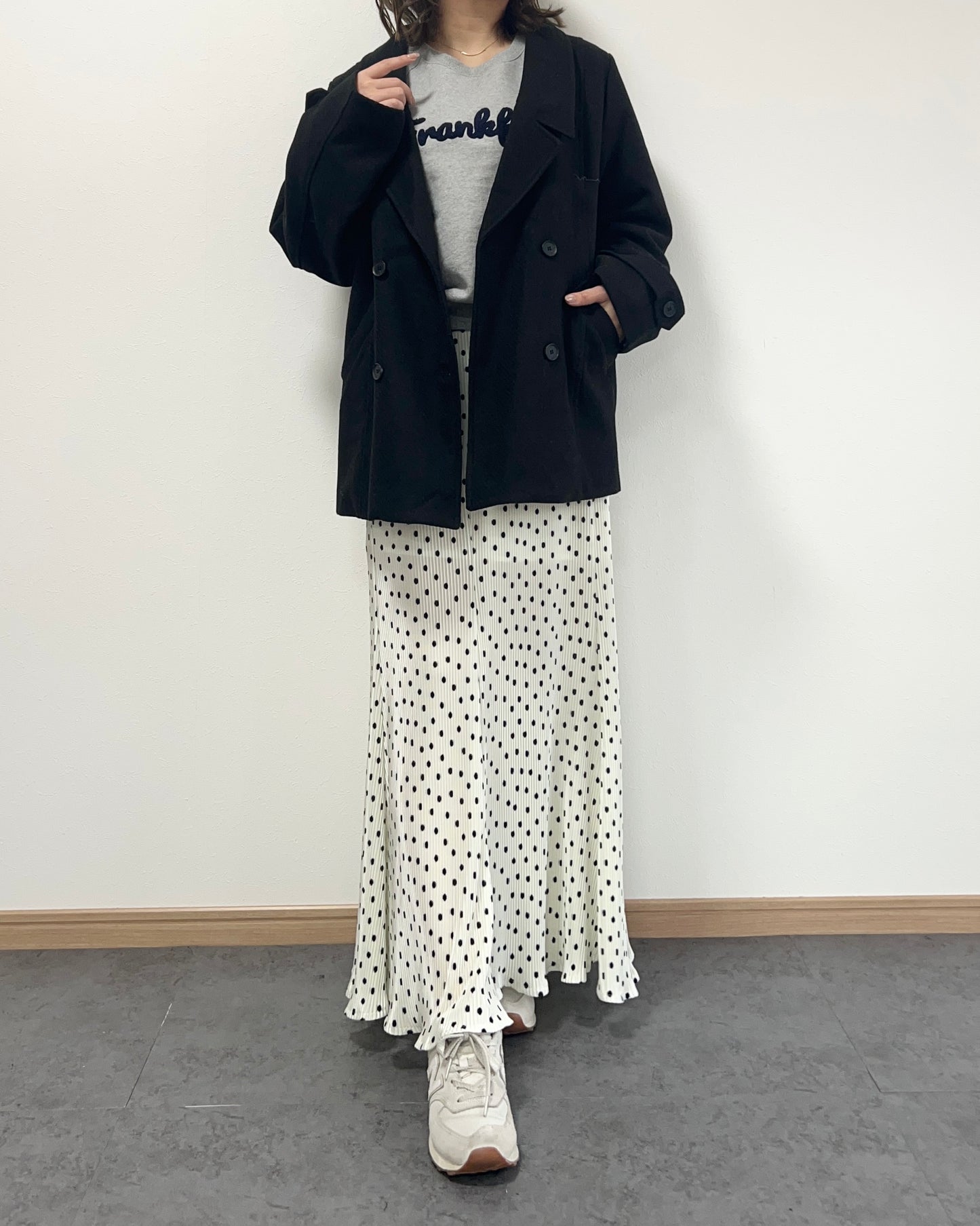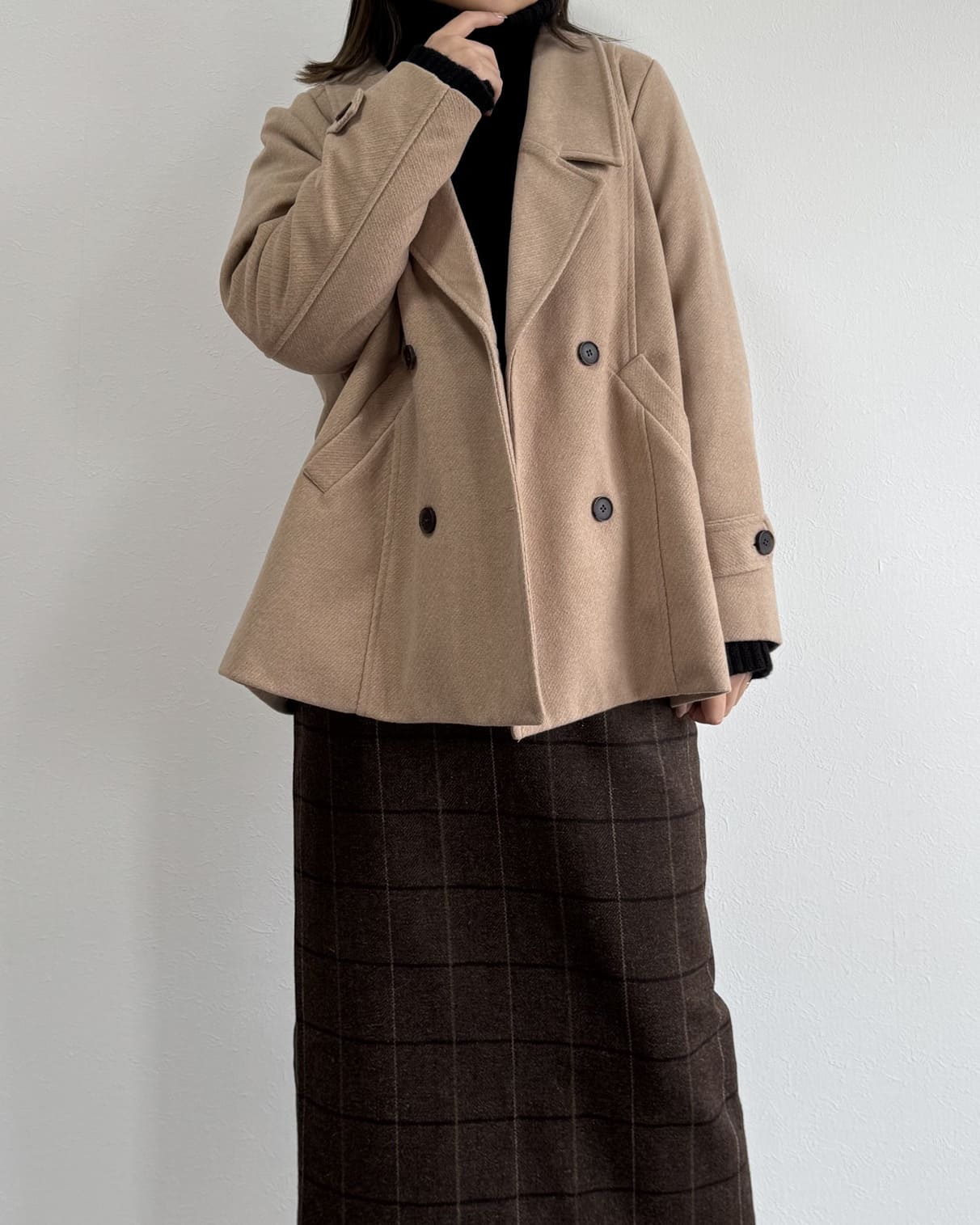ショートコートですが、ギリギリお尻のラインを隠す丈で、気になる下半身もカバーし、長めのトップスとの相性も◎